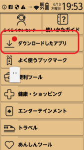 ダウンロードしたアプリは、「ダウンロードしたアプリ」をタップして開くと見つけることができる。 新しくダウンロードしたアプリは赤丸が右上につく。