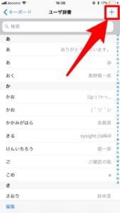 「設定」→「一般」→「キーボード」→「ユーザー辞書」でこの「+」ボタンで登録